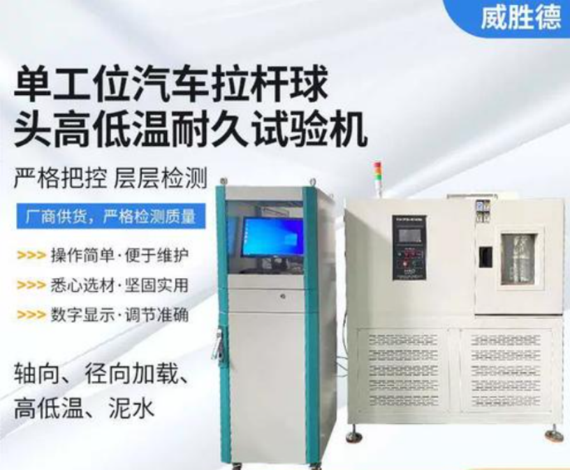 三、应用领域 1. 汽车零部件行业 - 主要应用于汽车球头拉杆的质量检测和耐久性评估。汽车球头拉杆是车辆悬挂系统和转向系统的重要部件,其质量直接关系到车辆的操控性能和行驶安全。 - 通过使用威胜德球头拉杆试验机,汽车零部件制造商可以确保产品符合相关质量标准和安全规范,提高产品的市场竞争力。